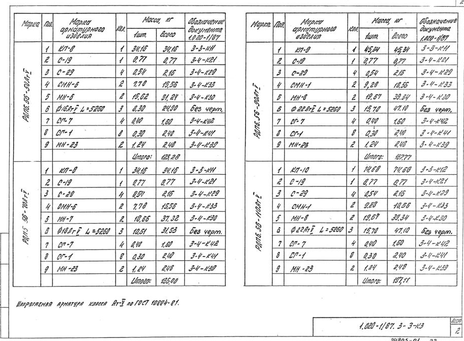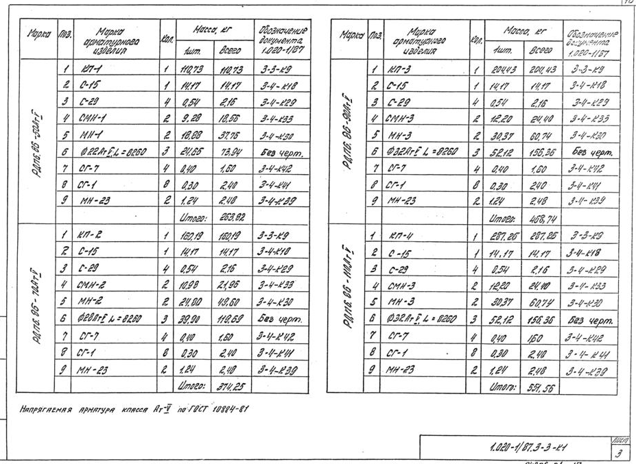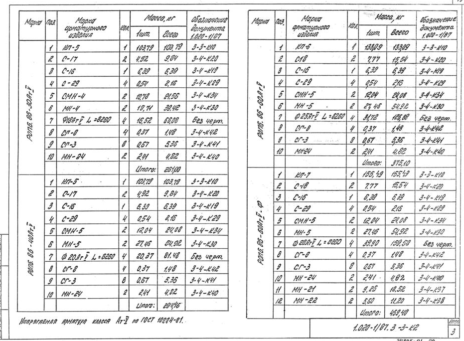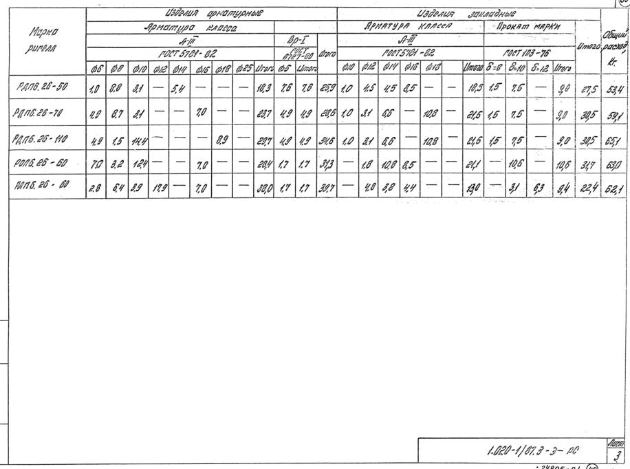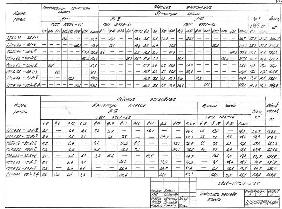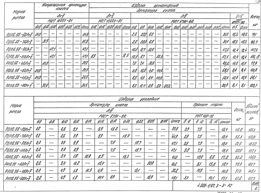 (4500 кгс/м2)-диаметры продольной арматуры и