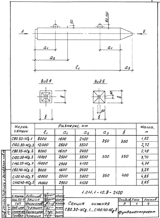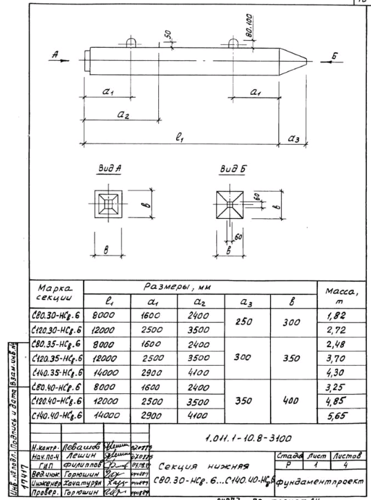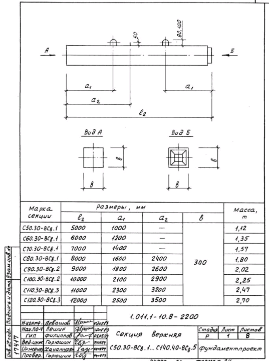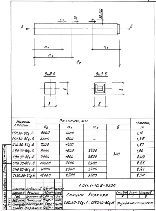 мм. Коэффициент перегрузки к нагрузке от собственного веса секции не учитывается. Коэффициент динамичности принят равным: